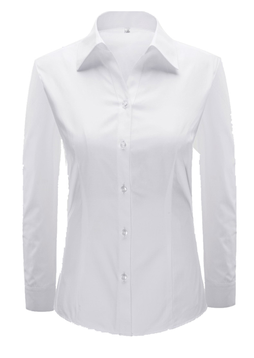 品名:女長袖V領襯衣;版型:修身版;貨號:YW4516 ;面料:Y4516;顏色:純白細斜紋 ;Fabric:C45/T55